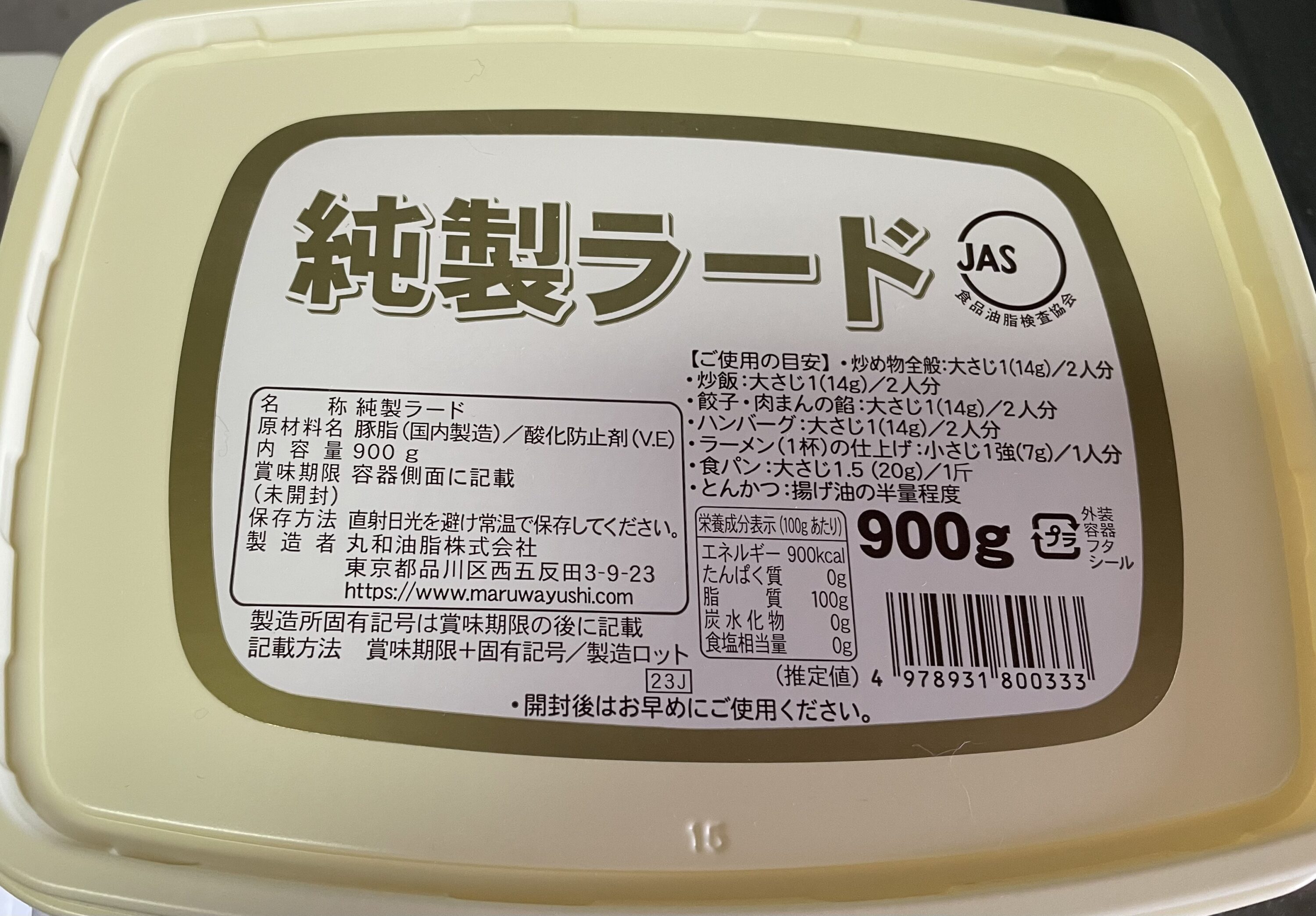 今回はこちらの純正ラード900gを丸々使っていきます。